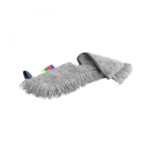 Mikrošķiedras mops ar dažāda garuma šķiedrām: īsās nodrošina noturību un virsmu tīrīšanu, savukārt garās brīvo netīrumu savākšanai.
