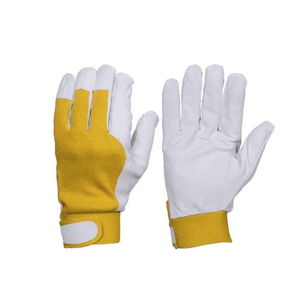 Darba cimdi no trikotāžas un cūkādas plaukstas daļā.