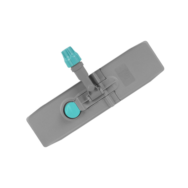 Viegls, nerūsējošs plastmasas mopa turētājs, kas paredzēts grīdu dezinfekcijai vai mazgāšanai. Ar kāju nospiežot pogu, kas atrodas turētāja virspusē, atver turētāju. Universāls gredzenveida stiprinājums ļauj lietot jebkuru kātu ar diametru no 18 līdz 23 mm. Elastīgais savienojums ļauj uzkopt arī grūti aizsniedzamas vietas.