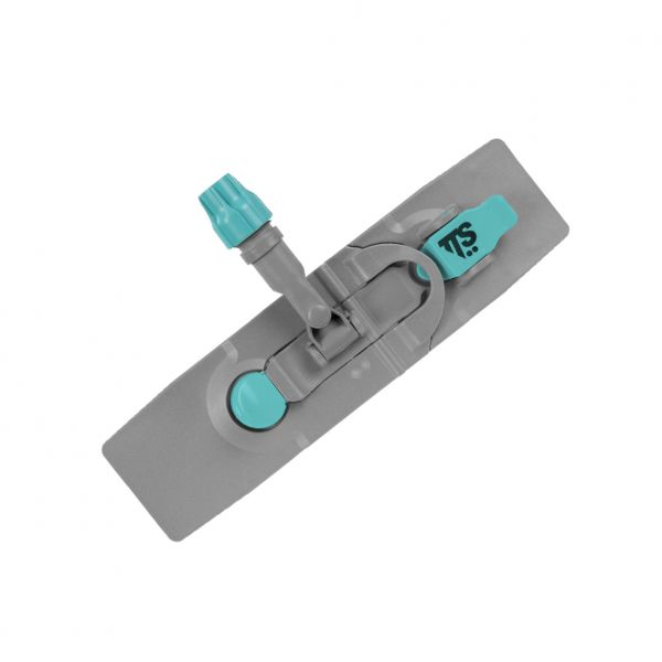 Viegls un parocīgs mopa turētājs ar pogu, kas paredzēts grīdu mazgāšanai vai dezinfekcijai.