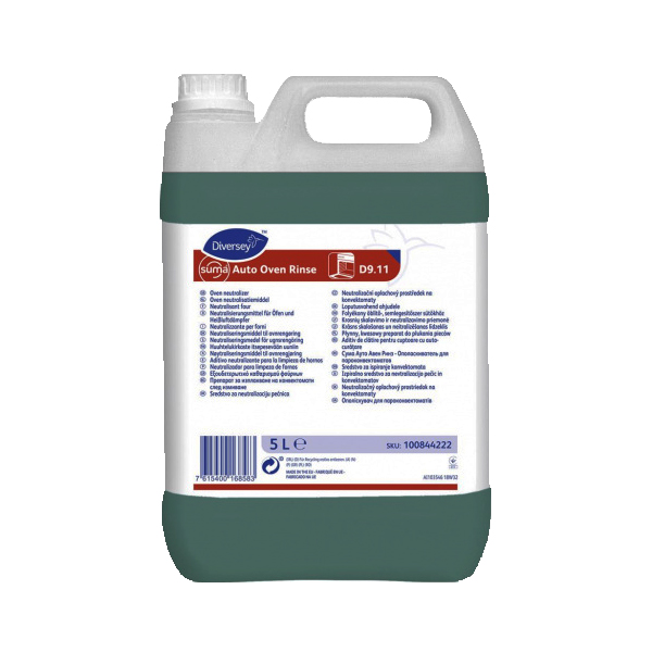 Suma Auto Oven Rinse D9.11 ir koncentrēts, mazputojošs skalošanas līdzeklis, kurš šķīdina nosēdumus. Paredzēts lietošanai cepeškrāsnīs ar automātiskās tīrīšanas funkciju.