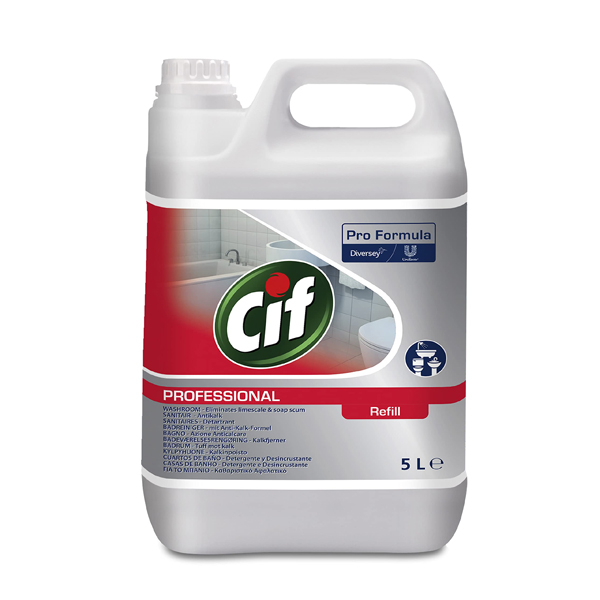 Cif Washroom novērš kaļķakmens, netīrumu un ziepju nosēdumu veidošanos, padara virsmu spīdīgi tīru un piešķir telpai svaigu aromātu.